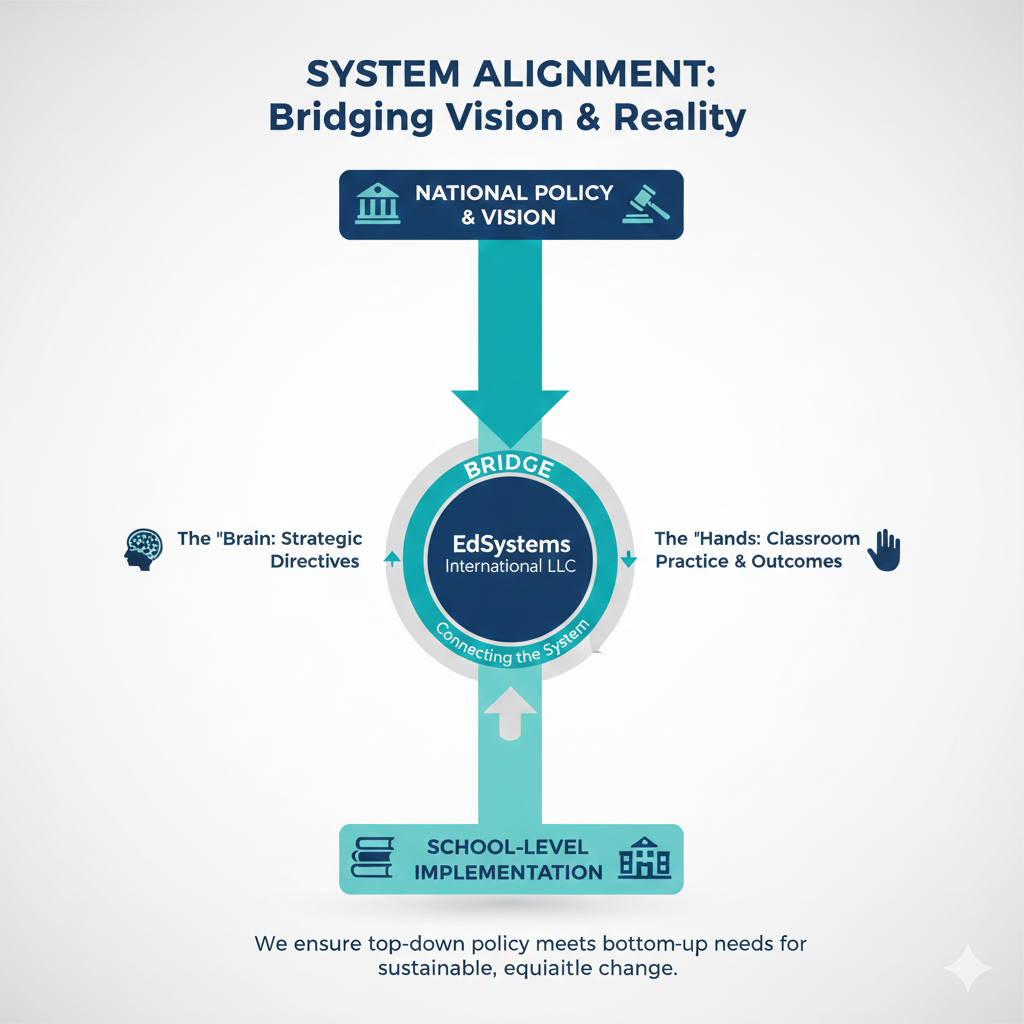 We bridge the gap between high-level policy and classroom reality. By aligning national mandates with school-level implementation, we ensure that systemic reforms translate into measurable, sustainable change for every student.